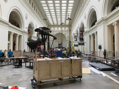 As it turned out, the opportune moment to create such a gallery wouldn’t arrive until nearly two decades later. A multi-part plan was established in 2016: the SUE move would occur concurrently with a rebranding and redecorating of Stanley Field Hall, with hanging gardens and a Patagotitan cast filling the vertical space better than the Tyrannosaurus ever could. Meanwhile, the temporary (and now traveling) exhibition Antarctic Dinosaurs would keep fossil fans happy during the 9 months SUE was off display.