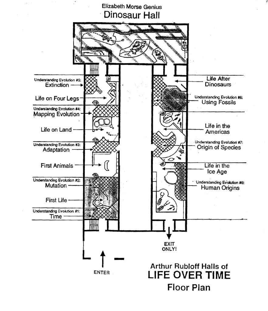 The video above was kindly shared by Dave Dolak. He shot it on the last day Life Over Time was open to the public, for use in his historic geology course at Columbia College. It is by far the most complete visual record of the exhibit I’ve come across, including in the Field Museum’s own archives. Many thanks to Dave, as well as former student Marcin Warzick, for creating and sharing this video.