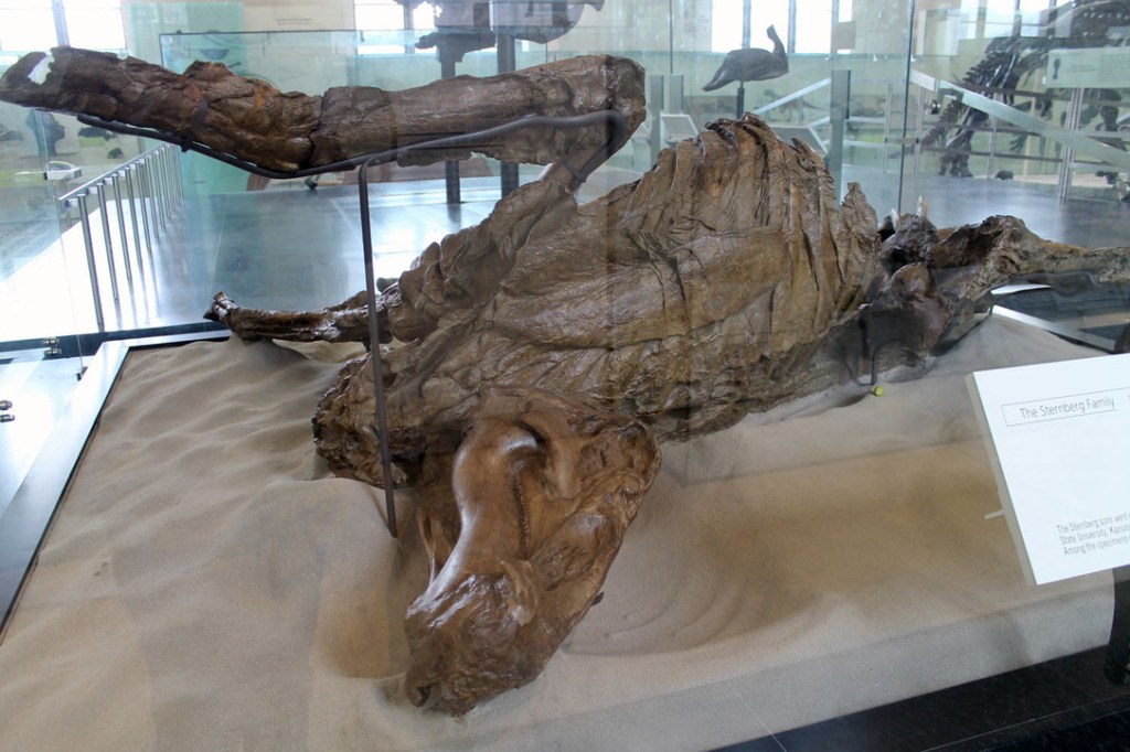 The skeleton—an Edmontosaurus—turned out to be almost entirely wrapped in skin, like a hardened, wet sack draped over the bones. Charles H. told George that it was the most incredible fossil he had ever seen, and later wrote in his memoir that he knew the moment he saw it that it was time for his son to take the lead in the family business. Word of the find made it to Henry Osborn, who immediately sent a representative to buy it for the American Museum of Natural History. The Edmontosaurus “mummy” (as Obsorn called it) was fully prepared and on display within two years, and is still revealing new information about the life appearance of dinosaurs to this day.