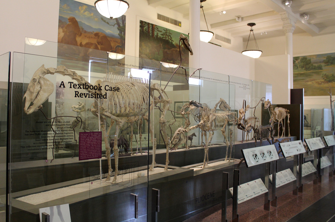 A display of fossil horses at AMNH. Photo by the author.
