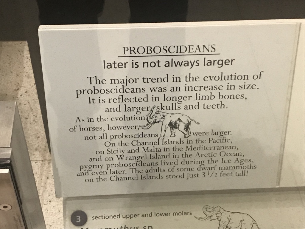 Simply put, I’d be very surprised if many visitors are engaging with the phylogenetic organization, or even wondering why the fossils they’re looking at are displayed together. Remember: most visitors come in mixed-aged groups. The trip to the museum is a social experience, and interactions occur among visitors as much as they occur between visitors and the exhibits. The best museums anticipate and meet the needs of these visitors. Too much information, or irrelevant information, is just as bad as too little. I’m all for “broadening horizons” with “challenging” content, but the exhibit needs to be accessible first.