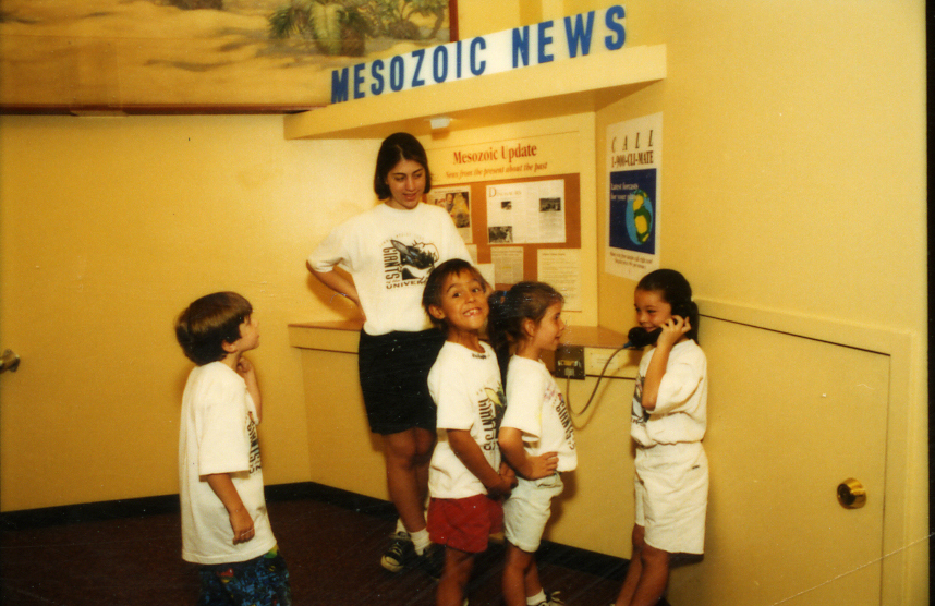 A group of children get updates on climatic changes over time in the form of news reports. Photo by John Weinstein, © Field Museum