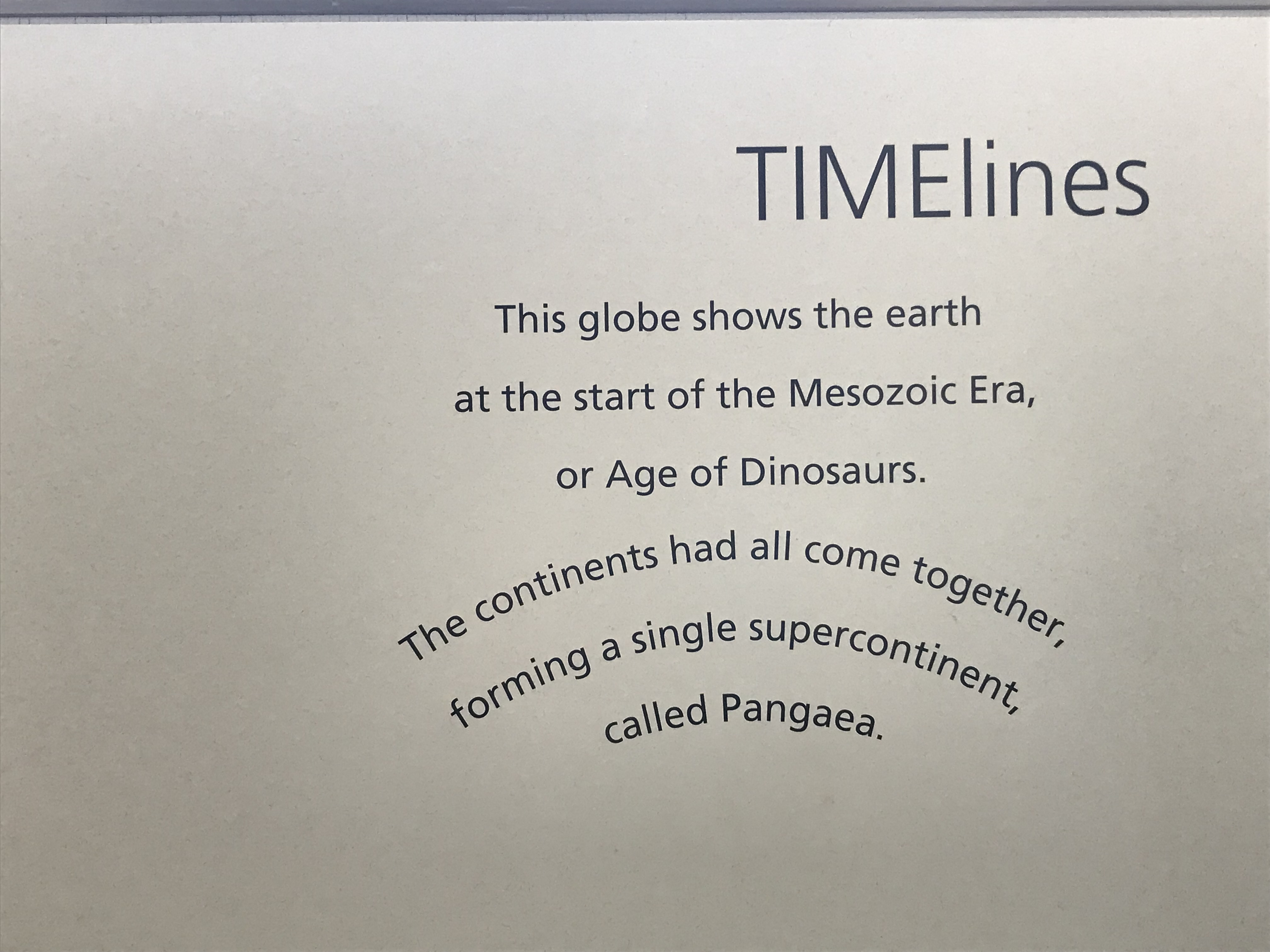 Speaking of unhelpful design, there are some bewildering graphic design choices in these halls. On a single graphic, text may switch from center to left to right justification, randomly change in font and/or size, or be interrupted by illustrations placed in the middle of paragraphs. Sometimes paragraphs or even sentences run across multiple surfaces, and some text is printed on the glass barriers in front of fossils, making it even harder to read. I don’t want to harp on this forever so I’ll just link to some more chaotic examples here, here, here, and here.