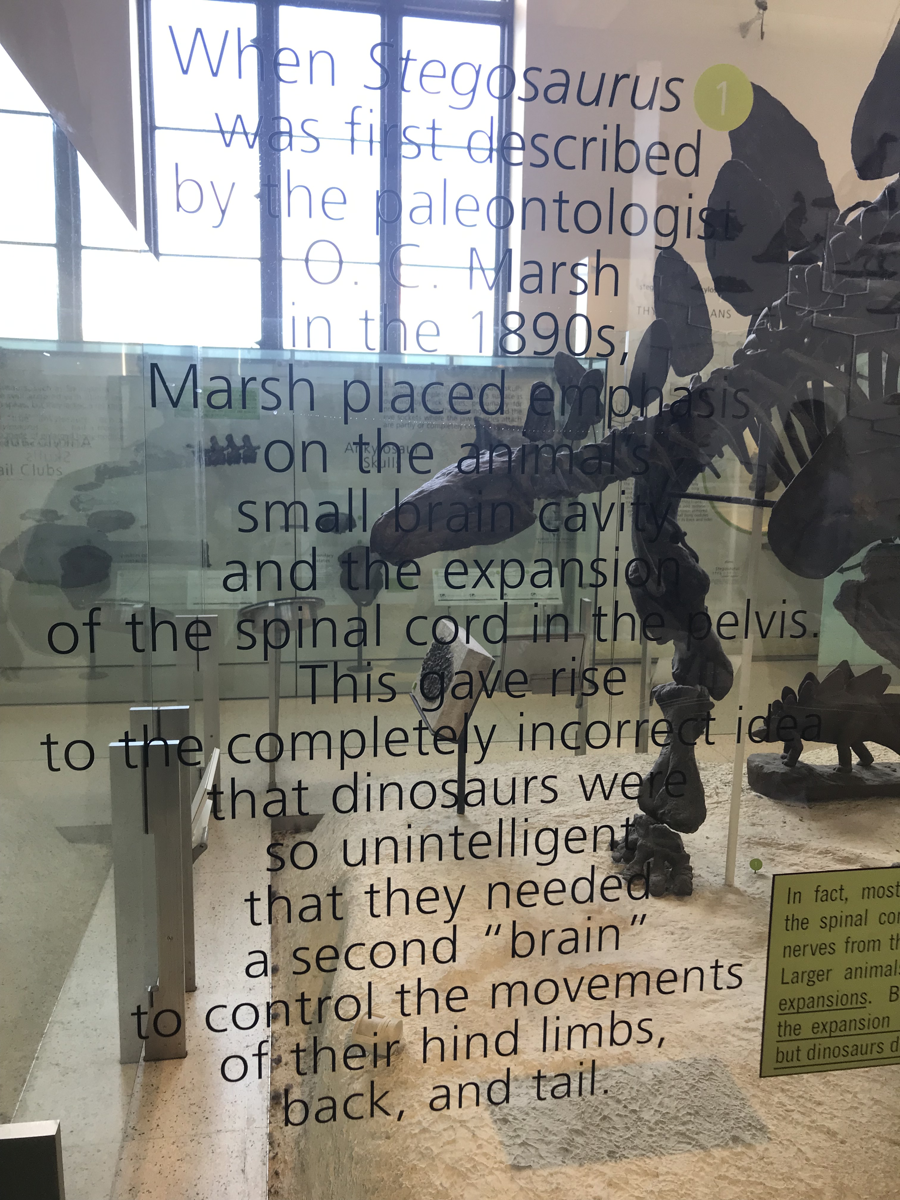 On top of the outdated information scattered throughout the halls, about a dozen of the mounted dinosaur skeletons are in old-fashioned, tail-dragging poses. These were known to be inaccurate at the time of the last renovation, but the budget only covered remounting two of them (the Apatosaurus and the Tyrannosaurus).