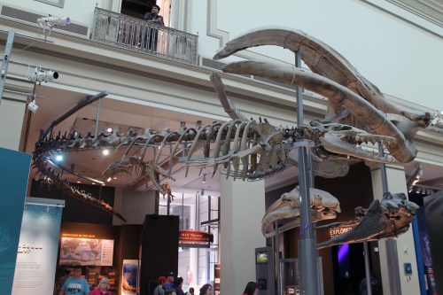 The final takeaway that I’d like to point out is that the evaluators found that the fossil specimens were by far the most popular and memorable elements of Deep Time. “Seeing fossils” was the most common response (55%) among visitors asked for their favorite part of the exhibit. This far surpassed the number of visitors who mentioned videos (5%) or interactives (3%). To be fair, the mounted skeletons are the largest and most visible parts of Deep Time. The exhibit has just a couple comparably large video displays, and I’d argue that it only has three proper interactives (it has plenty of touchscreens where visitors select which video they’d like to play, but does that really count as interactivity?). There are over two dozen touchable bronze models, however, which also didn’t rank as highly as the fossils.