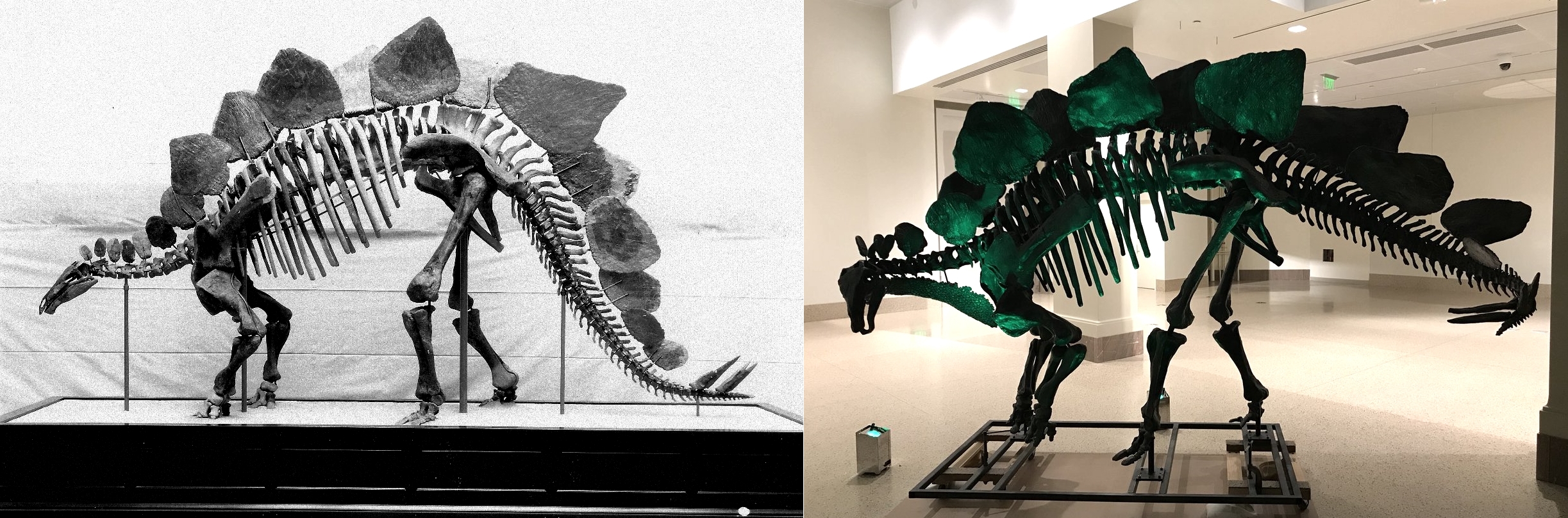 An updated Stegosaurus replaces the 2004 cast, which replaced the original 1913 mount. Images from the Smithsonian Institution Archives and Kirk Johnson on twitter.