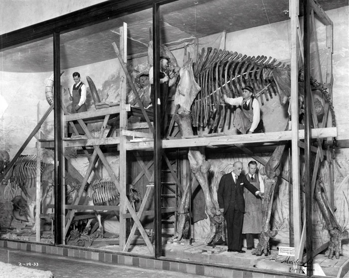 The popularity of fossil blocks from Agate Springs coincides with a shift in philosophy toward exhibitions at natural history museums. While early 20th century exhibits were catalogs of life, emphasizing the breadth of the museum’s collection, by the 1920s and 30s many museums had begun moving toward narrative exhibits. Displays were intended to communicate ideas, and objects served as illustrations of those ideas. The fossil blocks from Agate Springs were ready-made illustrations of a number of paleontology concepts, from the process of taphonomy to the task of excavation millions of years later. Most have remained on display to this day, a fact that James Cook would undoubtably be pleased with.
