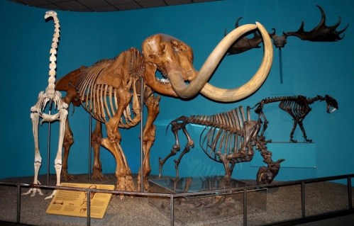 MPM’s historic mastodon was joined by new mounts of a moa and an ice age bison constructed by Rolf Johnson. Photo by the author.