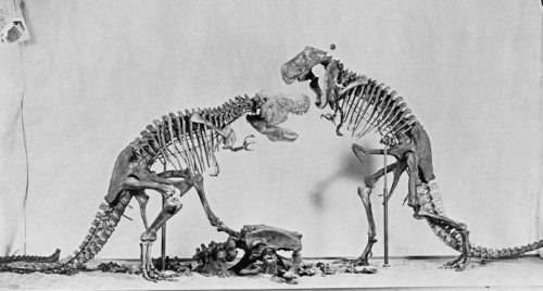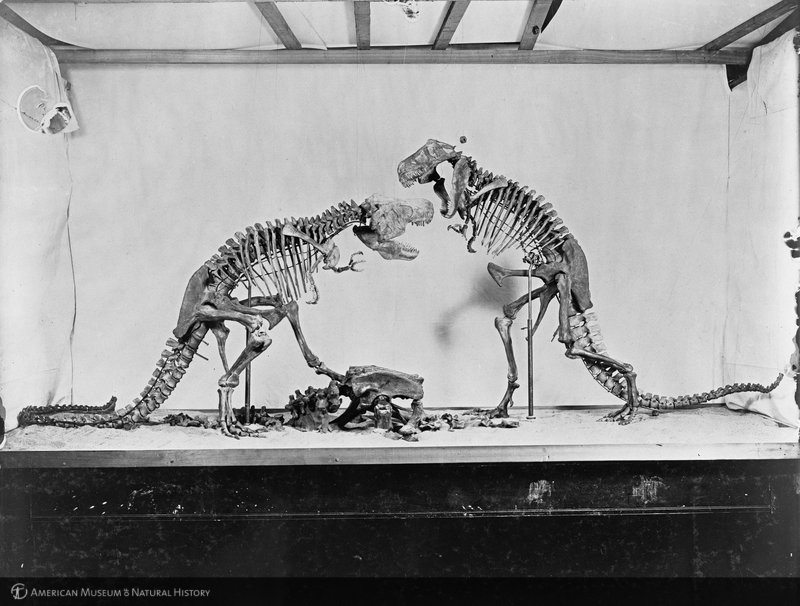 E.S. Christman’s miniature models act out Osborn’s unrealized battling Tyrannosaurus display. Image courtesy of the AMNH Research Library.