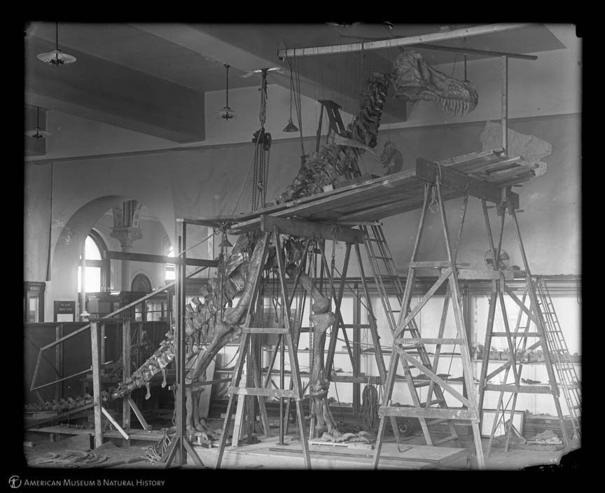 The Tyrannosaurus mount takes shape. Image courtesy of the AMNH Research Library.