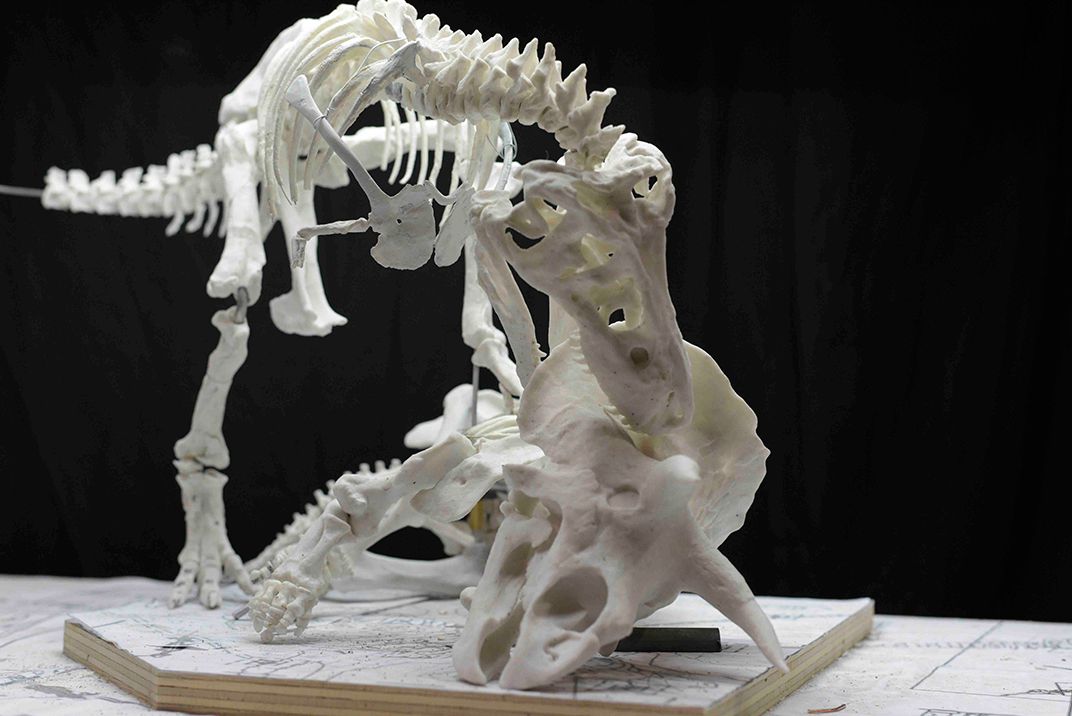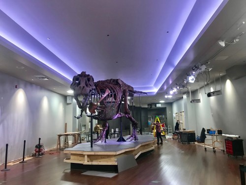The cult of T. rex began in the halls of museums, and museums remain the prehistoric carnivore’s symbolic home. Mounted skeletons provide the legendary T. rex its credibility: these are the authentic remains of the giant predator that once stalked North America. And yet, most of the dozens of  Tyrannosaurus skeletons on display around the world are casts, and none of them represent complete skeletons (rather, they are filled in with spare parts from other specimens and the occasional sculpted bone). These are sculptures as well as scientific specimens, works of installation art created by artists, engineers, and scientists. Herein lies the paradox presented by all fossil mounts: they are natural specimens and constructed objects, embodying a challenging duality between the realms of empiricism and imagination.