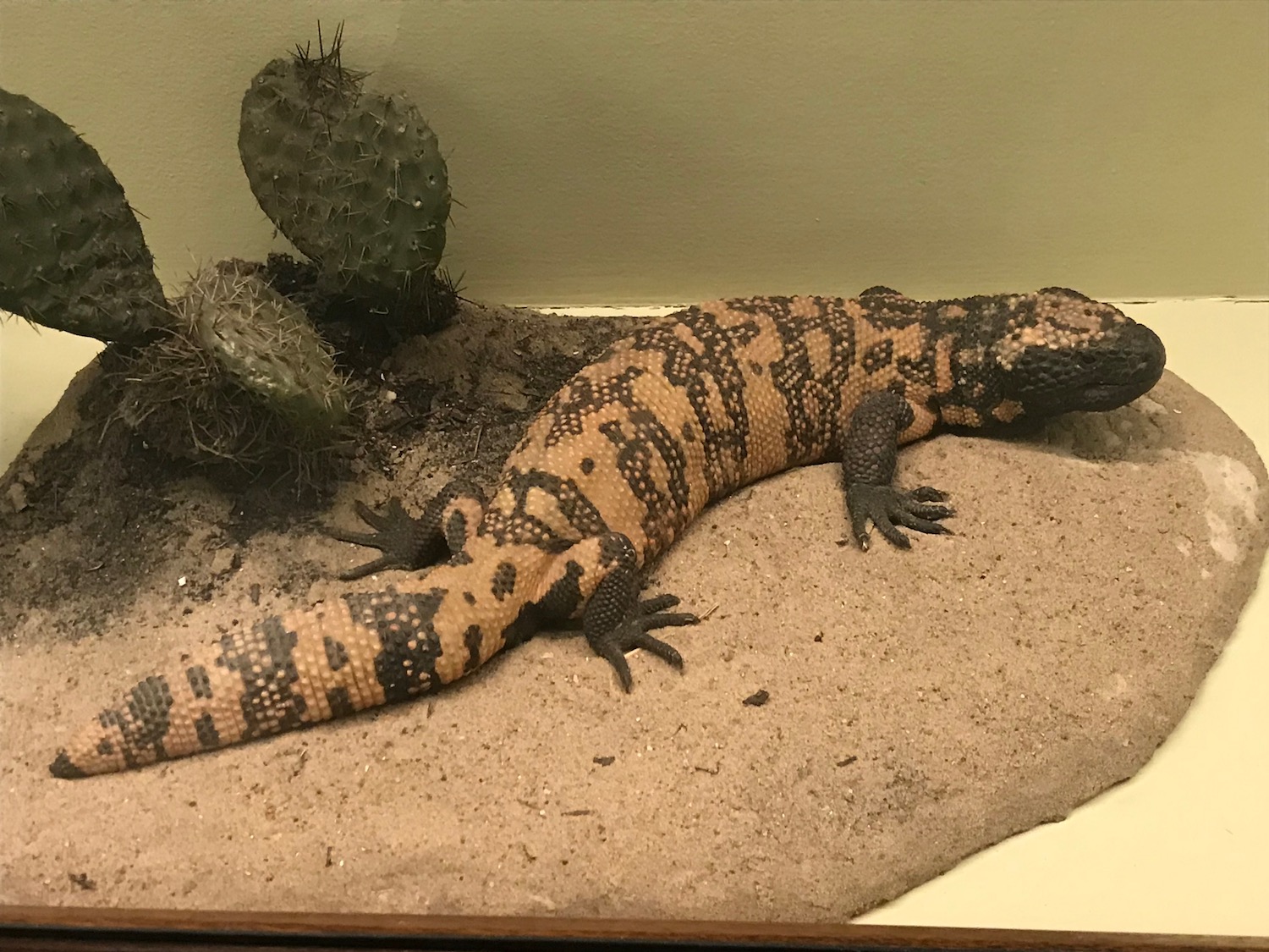 Naturally, the live animals are the stars of the show. Gwangi, a 38-year-old, puppy-tame Cuban rock iguana, is my favorite, but it’s also a lot of fun watching the European glass lizard dig in and out of his bedding, or seeing the reticulated python splash around in the water. We also made use of the museum’s collection of spectacularly life-like model reptiles from the early 20th century, and commissioned a few new ones as well. The models introduce visitors to creatures they might never have heard of, as well as one with a role in Field Museum lore.