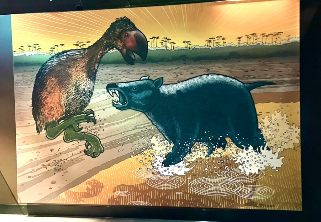 That brings us to After the Age of Dinosaurs. This exhibition is about the immediate aftermath of the end-Cretaceous extinction, and how the world’s ecosystems reassembled after that global catastrophe. But a summary of the subject matter doesn’t fully encapsulate what this show is about. The early Paleogene was famously a time of giant birds and little horses. Taking some inspiration from Alice in Wonderland, we played with the idea that sizes are askew and nothing is as it seems. The exhibition is colorful, whimsical, and full of displays that are just a little weird.