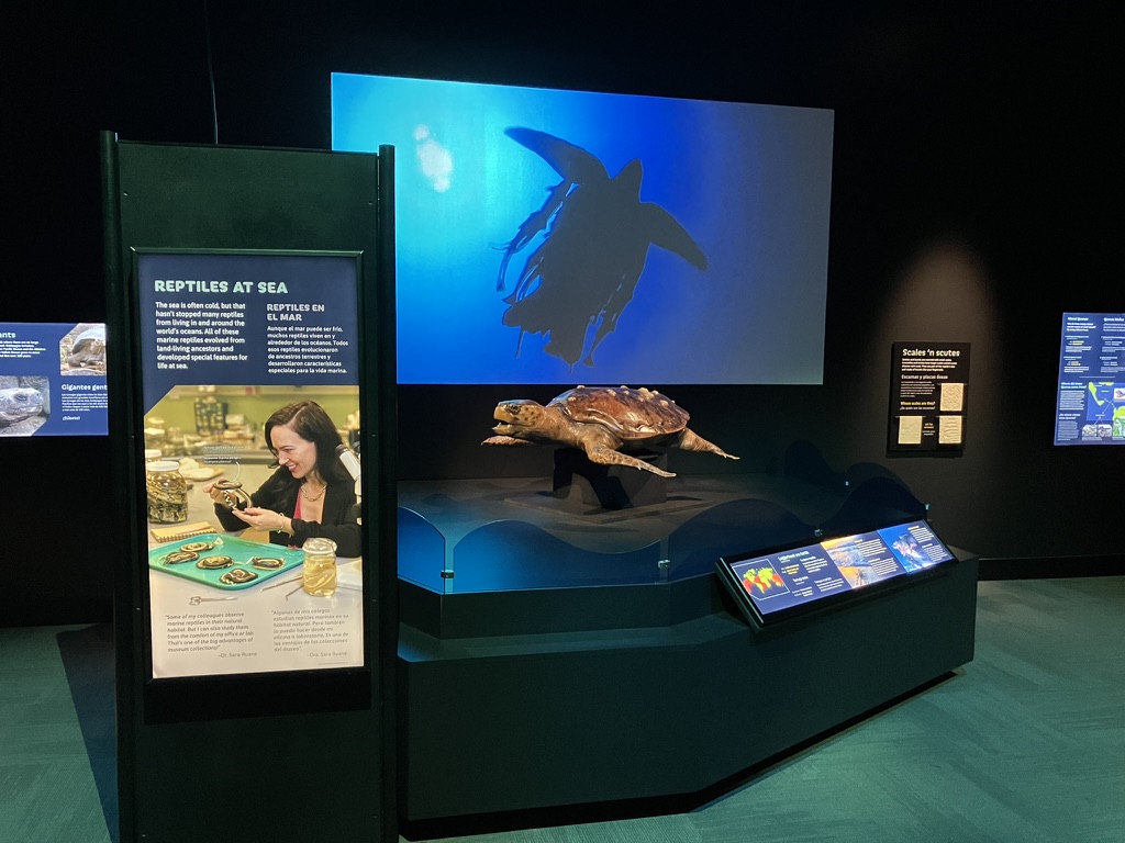 Reptiles Alive is straightforwardly about getting people excited to see and learn about incredible animals. Often, an exhibition calls for a grand narrative or lofty learning goals, but I thought the best approach for this one was to simply follow the “rule of cool.” Does a fact or image or display idea make people say, “wow, that’s amazing?” Then it it belongs in the show. Sometimes “because it rules” is a perfectly valid reason to do something—that’s why we have a 110-foot black mamba skeleton hanging from the ceiling.