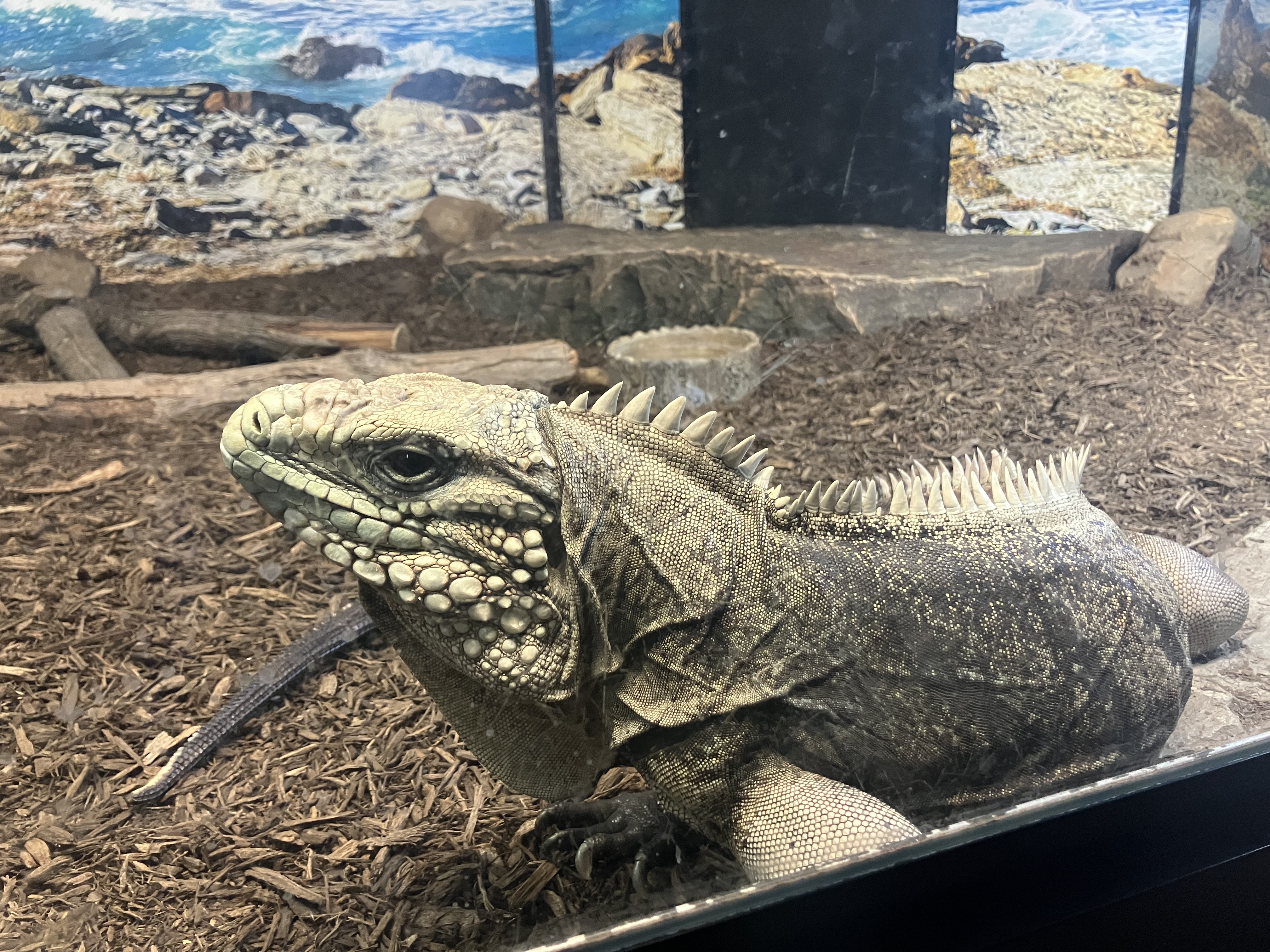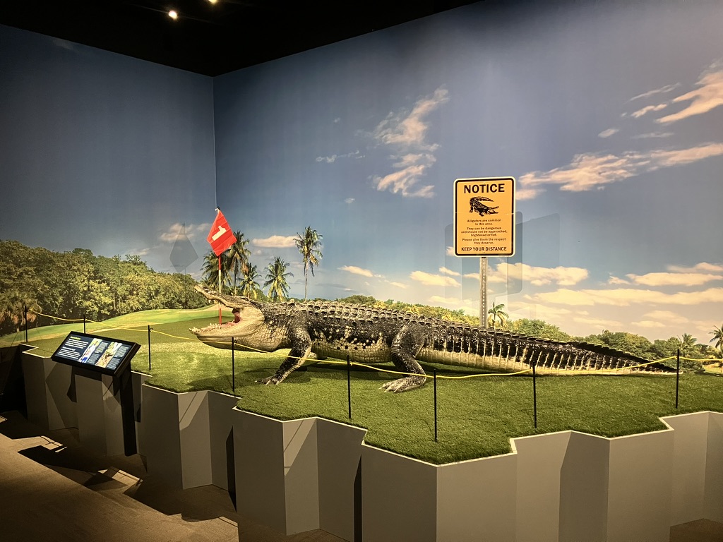 The final display originated as a joke. We wanted to make a big diorama, but detailed botanical models are just about the most expensive and time-consuming thing you can make. Thinking about reptile habitats without much vegetation, I glibly offered that we could recreate the “gator on a golf course” scene from Happy Gilmore. But we soon realized that was the perfect ending for our exhibition: draining swampland to build golf courses is an example of how humans are invading reptile habitats. That means we’re going to encounter reptiles more often, and we’ll need to learn to live alongside them. Hopefully, visitors that came in fearing reptiles will leave with respect and admiration for them.
