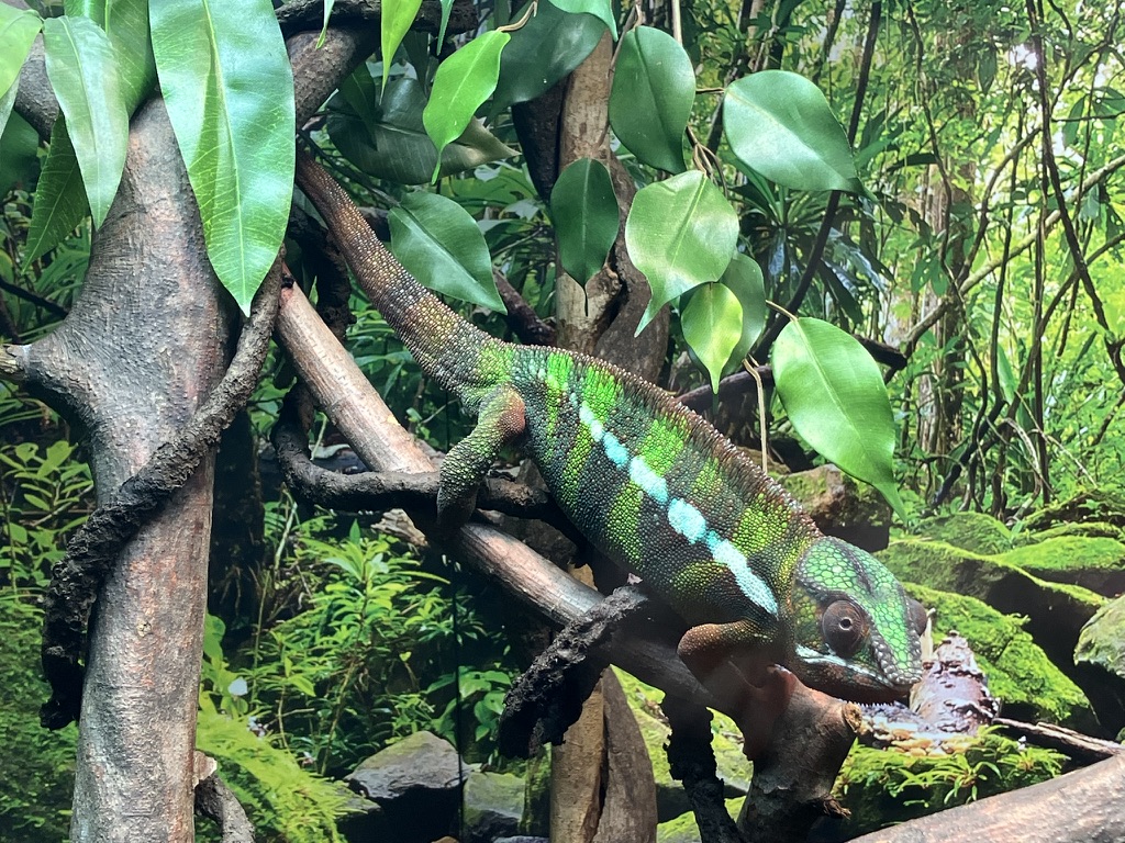 As the title suggests, Reptiles Alive is an exhibition that features live reptiles. This was a collaborative project between the Field Museum and Clyde Peeling’s Reptiland, a zoo in Allenwood, Pennsylvania. Reptiland provided the animals, their enclosures, and their human caretakers, while we designed and built a full-sized exhibition around them. I wrote and developed the new material alongside Associate Curator of Herpetology Sara Ruane.