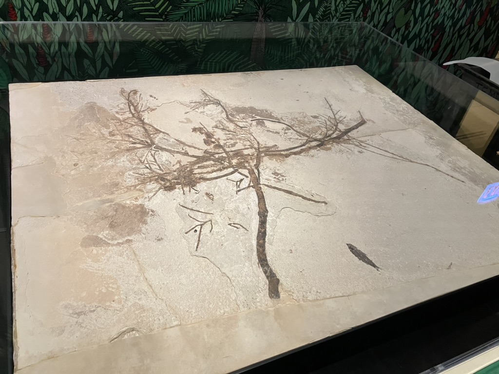 The fossils on display include both brand-new specimens collected during the 2024 field season and classics from the collection that we’d been waiting for an excuse to show off. Visitors can see the largest Megacerops skull ever found, the world’s only known cattail fossil, the oldest grapes from the western hemisphere, a perfectly-preserved passerine bird that was just named this year, and at least four fossils that are in press and so haven’t been formally named yet. The highlight for me is the Diatryma cast skeleton, which was acquired in a trade with the American Museum of Natural History in 1937. This set of disarticulated parts had never made it onto display before, so it was exciting to see it assembled into a standing mount for the first time.