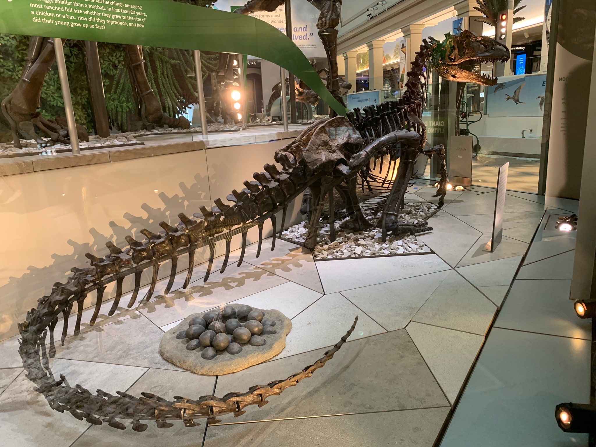 In the new National Fossil Hall, the 2010 cast returns with a new paint job but no substantial changes. The juvenile Camptosaurus has also returned in cast form.